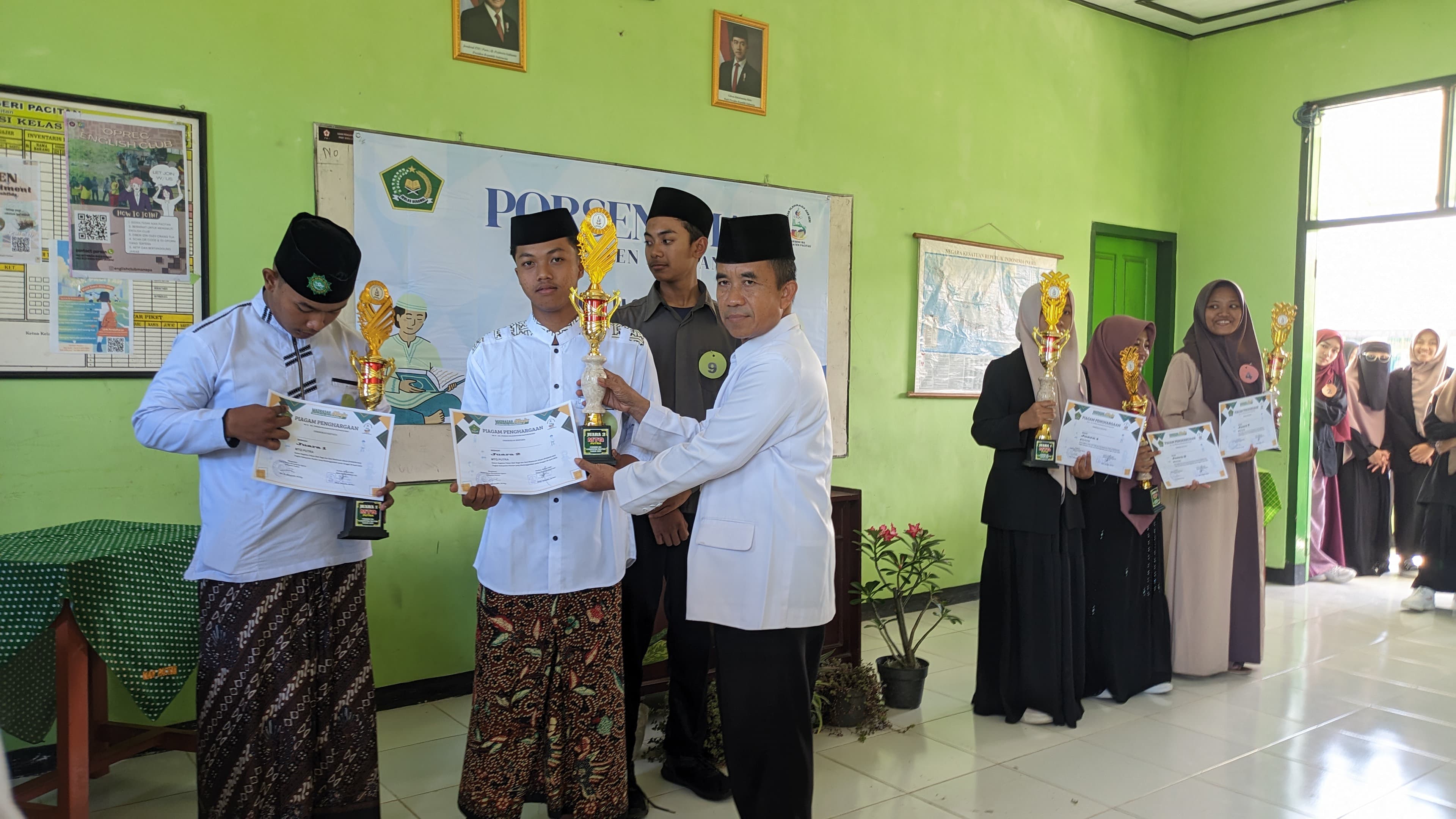 Dua santri berhasil mengukir prestasi yang membanggakan dalam ajang bergengsi Pekan Olahraga dan Seni (PORSENI) tingkat Madrasah Aliyah (MA) Se-Kabupaten Pacitan tahun 2025. Keduanya sukses membawa pulang gelar juara dari cabang lomba Musabaqoh Tilawatil Quran (MTQ).